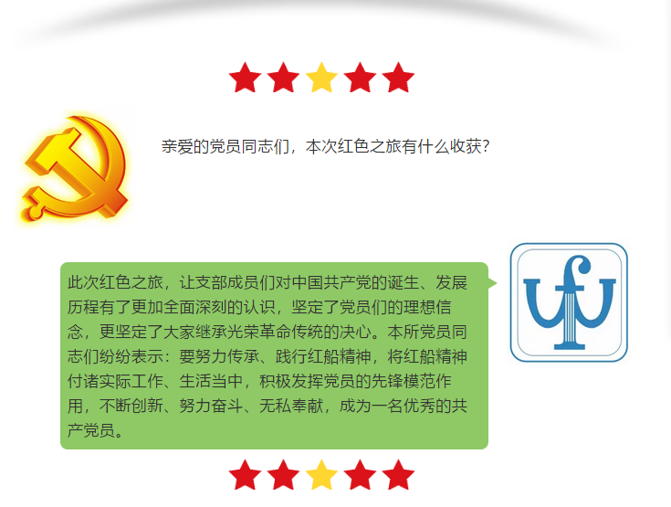 离开南湖革命纪念馆后,本所党员来到南湖,驻足红船边,聆听党的光辉历史,切身感受到革命之帆从这艘红船上起航的壮阔图景。讲解员还在现场为大家上了一堂生动的党课,介绍了党的第一个纲领和第一个决议在红船上诞生的过程。