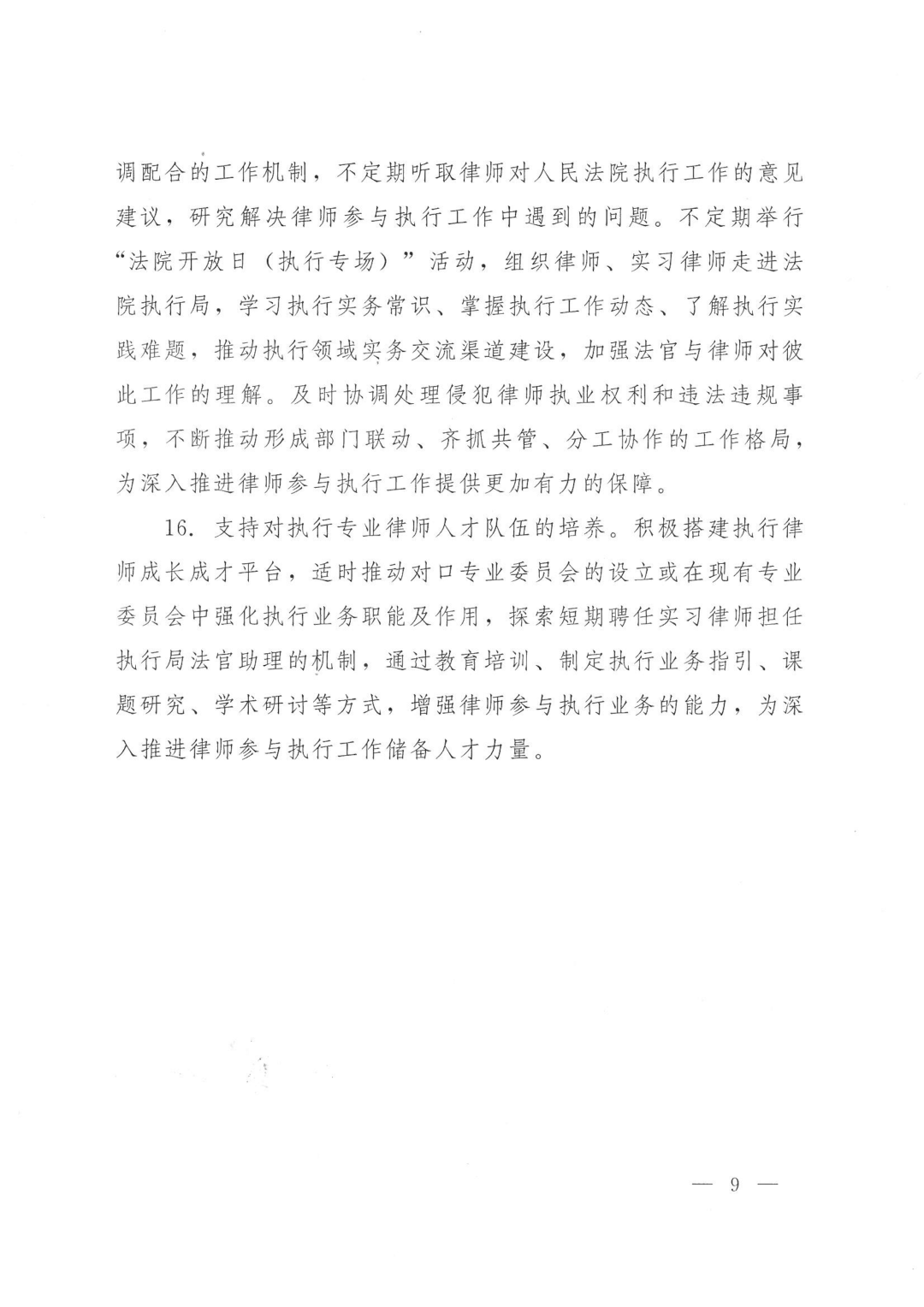 《关于进一步支持和规范律师参与人民法院执行工作的实施意见》全文▼